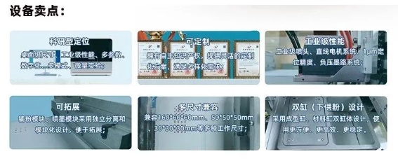 设备搭载工业级压电式喷头与负压闭环墨路系统,确保设备墨水粘度兼容性高、墨滴控制精确,适合科研和小型样件高精度打印。采用模块化双缸体设计,支持160*60*60mm、50*50*50mm、30*30*30mm等多种尺寸缸体模式,小缸体便于快速验证材料,大缸体满足稳定性测试.